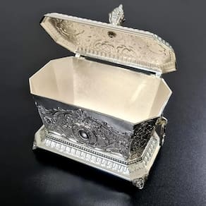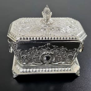 Açucareiro Acabamento Fino Em Metal Indiano 17 X 15 Açucareiro de Metal com acabamento fino 17x15 Luxuoso açucareiro fabricado em metal. Peça super resistente e de excelente qualidade garantindo sempre um alimento mais saudável. Seu design moderno, de acabamento brilhante, traduz praticidade e requinte para o seu dia a dia. Um toque de charme em sua mesa. Medidas: Altura total: 15 cm Comprimento: 17 cm Largura: 12 cm Material: Metal Cor: Prata Produto REF: Q1991