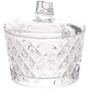 Açucareiro de Cristal Lyor Linha Diamante 10x10cm com Tampa Incolor Pote de Açúcar Mesa Postal.
