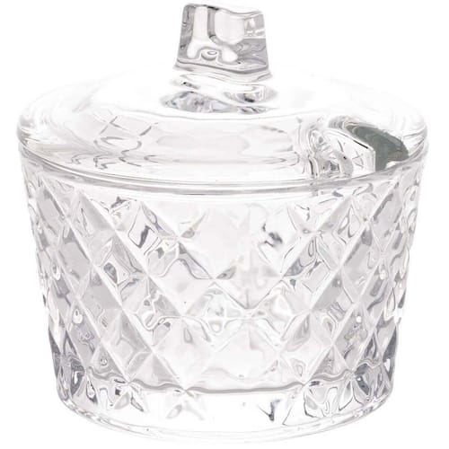 Garantia: 90 dias / Peso: 0,424kg / Cor predominante: transparente / Referência: 7899768012171 Dimensões sem a tampa: 10cm (D) x 6,5cm (A). Dimensões da tampa: 10cm (D) x 4cm (A). Cuidados: lavar com detergente neutro, esponja macia e secar imediatamente. Não lavar em máquinas, não utilizar produtos químicos. Capacidade: aproximadamente 230g de açúcar. Material: cristal.