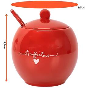 Informações Adicionais: - Validade: Indeterminada - Capacidade: 350ml - Tamanho Aproximado Açucareiro: 11 x 9,5cm Ø - Tamanho Aproximado da Colher: 2,5 x 1 x 13cm (CxLxA) - Peso Aproximado de Cada Produto: 0,321G - Tipo de Produto: Açucareiro L'amour 350ml em Porcelana - Cor : Vermelho - Composição: Porcelana - Pacote Contém: 1 Unidade - Garantia: 90 dias contra defeito de fabricação - Observação: As cores dos produtos podem sofrer variações em função da características do monitor e do ambiente durante a visualização.