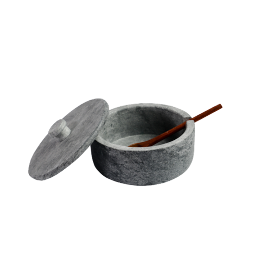 Açucareiro Farinheira Gourmet Pedra Sabão com Colher G 12cm