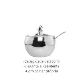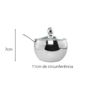 -01 Açucareiro Inox C/ Colher e Tampa de Vidro 360ml.