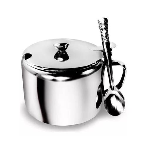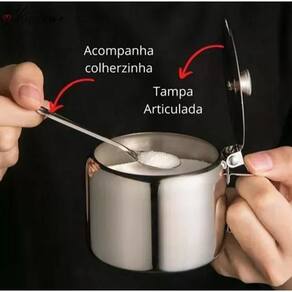 Açucareiro inox com colher com capacidade de 250ml - ad Açucareiro com tampa e colher 250ml inox. - ad