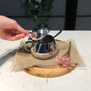 Açucareiro Lyr 250g em Inox com Tampa e Colher Café Mesa