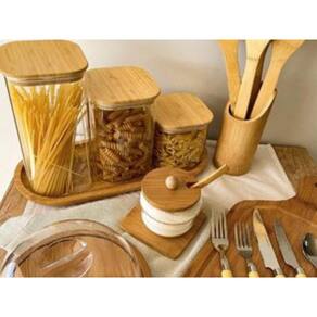 Açucareiro de Vidro Tampa e Colher em Bambu