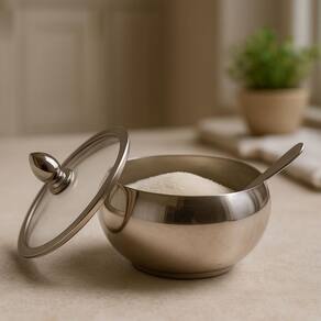 Adicione um toque de sofisticação à sua mesa com o Açucareiro com Colher em Aço Inox e Tampa de Vidro. Fabricado com materiais resistentes e de alta qualidade, este açucareiro garante praticidade e durabilidade no dia a dia, mantendo seus alimentos sempre protegidos e com muito mais estilo.