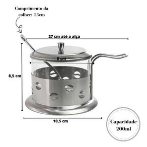 AÇUCAREIRO VIDRO E INOX COM COLHER - 200 ML - NS1369.