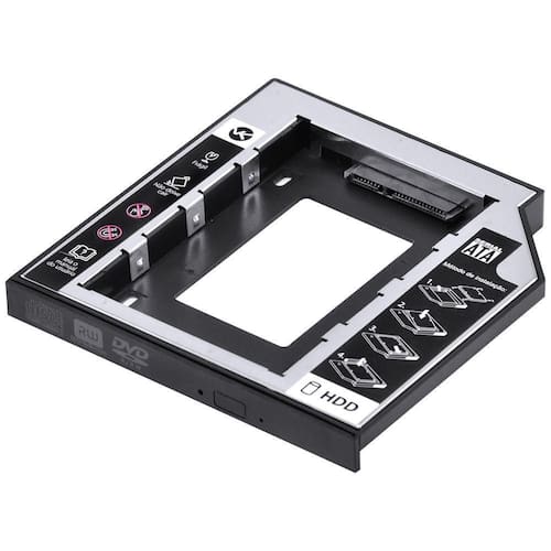Adaptador Caddy Para Hd Ou Ssd Gaveta Dvd Notebook Ac-127 O adaptador Caddy AC-127 da Vinik permite a substituição do leitor de DVD/CD do seu notebook fazendo com que ele comporte mais um HD/SSD, aumentando assim a memória, capacidade de armazenamento e velocidade do seu equipamento. Compatibilidade: Interface universal SATA 12.7mm Disco rígido suportado: 2.5 HD, SATA I II III, SSD. Suporta tecnologia SATA 3.0. Velocidade máxima de até 6Gbps. Material: alumínio e aço inoxidável Dimensões: 128x126x12,8mm Capacidade do disco rígido suportado: 1TB Cor: Prata Suporta instalação de um segundo sistema operacional. Ean: 7908020913207
