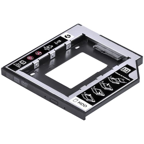 Adaptador Caddy Para Hd Ou Ssd Gaveta Dvd Notebook Sata 9.5mm Ac-95 O adaptador Caddy AC-95 da Vinik permite a substituição do leitor de DVD/CD do seu notebook fazendo com que ele comporte mais um HD/SSD, aumentando assim a memória, capacidade de armazenamento e velocidade do seu equipamento. Compatibilidade: Interface universal SATA 9.5mm Disco rígido suportado: 2.5 HD, SATA I II III, SSD. Suporta tecnologia SATA 3.0. Velocidade máxima de até 6Gbps. Material: alumínio e aço inoxidável Dimensões: 128x126x10,6mm Capacidade do disco rígido suportado: 1TB Cor: Prata Suporta instalação de um segundo sistema operacional.