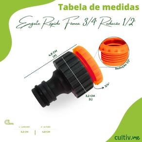 Adaptador Fêmea Com Rosca 3/4 Redução 1/2 Engate Rápido JAPIDescrição * Adaptador fêmea com rosca de 3/4" e bucha de redução para 1/2" em plástico para jardim é um item indispensável na utilização de mangueiras. * Ele possui redução que permite que o adaptador se encaixe com perfeição às torneiras com bico de menor tamanho.* Unindo a rede de água aos pontos de saída com muito mais eficácia. Características * Produto fabricado com matéria-prima de alta qualidade proporcionando uma irrigação precisa e confiável. * Adaptador com rosca para torneira de 3/4" e redução de 1/2". * Conexão para o engate rápido da mangueira. * Altura: 4,80 cm * Largura: 3,20 cm * Comprimento: 3,20 cm * Peso: 12g Informações/Dicas/Usos * O adaptador faz a ligação do sistema com a rede de água e com os pontos de saída. Anúncio referente ao conector fêmea 3/8" com bucha de redução para 1/2". Demais imagens ilustram tipos de aplicação. A Japi comercializa uma ampla llinha de produtos que atendem diversas necessidades, prezando por qualidade de satisfaçao deste de 1993. Nós da CULTIV.ME trabalhamos desde 2013 para trazer os melhores produtos ao alcance de todos. CULTIV.ME o verde que faltava!