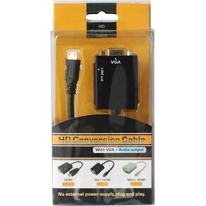 Adaptador Conversor Vga-Hdmi Conversor de vídeo hdmi para vga computador tv - fácil de usar instalação rápida e sem necessidade de configuração. - o conversor hdmi para vga + áudio para converte as conexões saída hdmi para saídas analógicas de áudio e vídeo em uma com eficiência e qualidade. - transmite som e imagem de computadores para tvs, monitores, projetores, entre outros dispositivos com conexão vga, mantendo a transmissão simultânea de áudio e vídeo. Fácil de usar, leve e compacto. Não requer instalação de software ou configurações complicadas. Excelente opção para treinamentos corporativos, palestras, salas de aula, salas de reunião, centros de convenções e buffets. Aplica-se em: - computador/ dvd/ laptop / camera digital/ trablet pc / media player - toda a área de produtos com entrada hd - sinal de áudio e vídeo para tv/ monitor / projetor Especificações: - peso: 70g - compatibilidade: hdmi/vga - resolução até 720p / 1080i / 1080p - material: plástico, metal e fios de cobre Dimensões: - comprimento do cabo: 25cm conversor - comprimento do cabo: 48cm cabo p2 Itens inclusos: - 01 cabo conversor hdmi para vga fêmea com áudio; - 01 cabo de som auxiliar p2; Homologação Anatel: 080281811799 Marca: Cabo Conversor Ean: 6017660061825