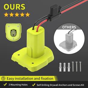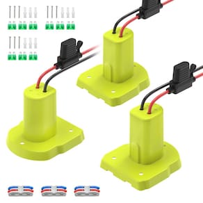 IMPORTANTE: Se for um produto elétrico, ele pode ser compatível com uma tomada de 110 volts. Se utilizado fora dos Estados Unidos, pode ser necessário um conversor de voltagem para garantir a operação adequada. Verifique se o produto que você está comprando é elétrico antes de considerar essas informações. Atualize seus projetos de bricolage com um adaptador de bateria compatível com as baterias Ryobi 18V ONE+. Este kit de adaptador versátil inclui tudo o que você precisa para uma conexão segura e confiável, com um fio 12 AWG de 9 polegadas, orifícios de montagem, parafusos e âncoras de drywall para uma instalação fácil. - Kit de atualização do adaptador: o adaptador de bateria vem com fio 12AWG de 9 polegadas e 3 orifícios de montagem para instalação flexível. Inclui parafusos e âncoras de drywall, permitindo uma montagem segura sem perfuração. Seguro e confiável: feito de material ABS retardador de chamas para maior durabilidade. Equipado com um porta-fusível e fusíveis de 3 × 30A para fornecer proteção contra sobrecorrente, garantindo uma operação estável e segura - Ampla compatibilidade: perfeitamente compatível com baterias de 18V, incluindo P102, P103, P104, P105, P107, P108, P109 e muito mais. Bloqueia a bateria com segurança, evitando conexões soltas - Fácil de usar: instale a bateria e o fusível e conecte seu dispositivo por meio de terminais de fio para uma configuração rápida e segura. Ideal para aplicações de bricolage com terminais positivos e negativos claros - Aplicações versáteis: este kit de conversão de bateria é perfeito para atualizar seus carros de passeio, brinquedos RC, robótica DIY, fonte de alimentação de emergência e muito mais. Vem com 3 fusíveis de reposição para fácil substituição