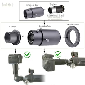 O adaptador de câmera telescópio extensível variável com um anel T2 se fixa aos corpos das câmeras SLR e DSLR. Serve para todas as Nikon SLR / DSLR : D1, D2, D3, D3S, D3X, D35, D4, D40, D40X, D50, D60, D70, D80, D90, D100, D200, D300, D300S, D600, D700, D750, D88. 00, D8 00E, D810, D3000, D3100, D3200, D5000, D5100, D5200, D7000, D7100, etc. (Dicas: câmeras sem espelho não são adequadas para uso. Escolha: adaptador de câmera sem espelho full-frame. Pesquise seu ASIN: B08LZ4LY7W) - O adaptador de câmera telescópio extensível variável com um anel T2 se fixa aos corpos das câmeras SLR e DSLR. Serve para todas as Nikon SLR / DSLR : D1, D2, D3, D3S, D3X, D35, D4, D40, D40X, D50, D60, D70, D80, D90, D100, D200, D300, D300S, D600, D700, D750, D88. 00, D8 00E, D810, D3000, D3100, D3200, D5000, D5100, D5200, D7000, D7100, etc. (Dica: câmeras sem espelho não são adequadas para uso) - O adaptador de câmera extensível e fácil de usar foi projetado para conectar o corpo da câmera e o telescópio. As oculares podem ser colocadas dentro do tubo de extensão do adaptador para aumentar os detalhes e a clareza da fotografia. - Acessório essencial para qualquer pessoa interessada em astrofotografia. Pode ser utilizado para fotografia de foco principal da câmera SLR e fotografia de projeção ocular. - Vários métodos de disparo: a ocular pode ser fixada no cilindro frontal para alcançar uma longa distância focal para objetos pequenos, como fotografar a cratera lunar. Usar adaptador sem oculares equivale a usar a distância focal de um telescópio, adequado para tirar fotos de toda a lua, nebulosa de gás, etc. - O tubo de extensão pode acomodar oculares de até 38 mm. Depois de conectar as oculares, a distância entre a frente e a traseira pode ser ajustada para aumentar ou diminuir o zoom para obter uma imagem com zoom. Recomenda-se o uso de oculares, que podem ser fixadas no barril, para que a câmera possa obter imagens de maior qualidade. Se houver um problema com o uso, por e-mail e resolveremos seu problema a tempo. (Escolha: adaptador de câmera sem espelho full-frame. Pesquise seu ASIN: B08LZ4LY7W)