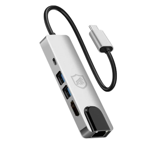 O adaptador de rede 5 em 1 da Gshield, possui USB-C porta de carregamento de entrada de energia, USB C para saída HDMI, 2 portas USB 2.0, Porta Ethernet Gigabit (Porta RJ45) funcional e versátil. com interface multimídia de alta definição, resolução de interface multimídia de alta definição de até 4K (3840x2160 a 30 Hz), com 1080P, 720P, etc.