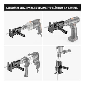 Adaptador de tico tico e furadeira/parafusadeira - esse adaptador consegue transformar sua furadeira ou parafusadeira em uma serra tico-tico...Praticidade e economia definem esse produto;- acompanha lâmina de serra; - com troca rápida e fácil da lâmina + engate rápido e universal que aceita lâminas com qualquer tipo de encaixe;- executa cortes retos e curvos, rasgos, chanfros, cortes de imersão em madeiras, metais e plásticos- empunhadura resistente-cor : preto Atenção:- o anúncio trata somente de um adaptador...Não acompanha furadeira.