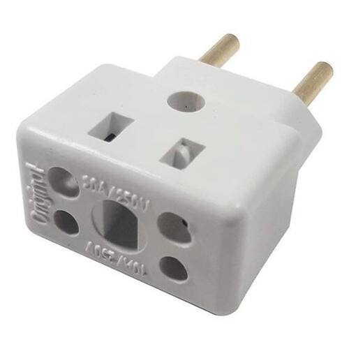 Adaptador De Tomada 3 Pinos para 2 Benjamin Tipo Bob 10 E 20 A Ideal para celulares importados com pino do carregador mais grosso que o convencional, bem como alguns modelos de cafeteiras e demais eletrodomésticos. Atende qualquer modelo internacional de conector.