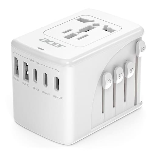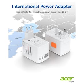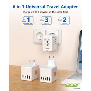 Título do produto: Adaptador universal de tomada de viagem Acer - Adaptador de alimentação internacional com 5 portas USB (3 USB C) 5,8A, carregador de tomada mundial para EUA para Europa Reino Unido França Alemanha Espanha, tipo C/E/F/G/I/L/A, preto ?Adaptador universal de viagem 6 em 1? Este adaptador de energia internacional tem 5 portas USB (29 W) e uma tomada CA universal que aceita plugues dos EUA, UE, Reino Unido, Austrália, para que você possa carregar simultaneamente 6 de seus eletrônicos, como iPhones, laptops, tablets, baterias bancárias, câmeras e fones de ouvido. Este adaptador de viagem em todo o mundo garante conectividade perfeita em suas aventuras em todo o mundo. ?Adaptador de alimentação internacional 5 USB-C? As 3 portas USB C do adaptador de viagem podem carregar até 3,0A/15W, e as 2 portas USB A podem carregar até 2,4 A/12 W, então este adaptador de energia para viagens internacionais é ideal para seus dispositivos USB, especialmente laptop, smartphone, tablet, câmera, etc. A saída máxima do adaptador universal para todas as portas USB é 5,6A/28W máx. ?Adaptador universal de viagem em todo o mundo? Este adaptador de viagem em todo o mundo cobre mais de 150 países: França, Alemanha, Itália, Espanha, Islândia, Grécia, Israel (Tipo C); Reino Unido, Irlanda, Londres, Inglaterra, Escócia, Dubai (Tipo G); China, Austrália, Nova Zelândia (Tipo I); EUA, Japão, Canadá (Tipo A) e muito mais, adaptador de plugue internacional adequado para suas viagens em todo o mundo. ?Não é um conversor de tensão? Este adaptador de energia universal não converte tensão, mas apenas o tipo de plugue e pode não ser adequado para usar aparelhos que aceitam apenas tensão de entrada de 110 V, como secadores de cabelo, chapinhas, alisadores e outros dispositivos semelhantes. Certifique-se de verificar se o seu aparelho americano suporta tensão dupla (100 v-250 v) para uso seguro. ? Itens essenciais para cruzeiros fluviais europeus? Este adaptador europeu de tomada de viagem não tem proteção contra sobretensão, nem cabos, portanto, o adaptador tipo C pode ser levado a bordo de um navio de cruzeiro. Medido em 2 × 2,2 × 3 cm, este adaptador compacto para plugue europeu cabe facilmente em sua bagagem ou mochila. - ?Adaptador de alimentação internacional 6 em 1? Este adaptador universal de viagem tem 5 portas USB (29 W) e uma tomada CA universal que aceita plugues dos EUA, UE, Reino Unido, Austrália, para que você possa carregar simultaneamente 6 de seus eletrônicos, como iPhones, laptops, tablets, baterias bancárias, câmeras e fones de ouvido. Este adaptador europeu de tomada de viagem garante conectividade perfeita em suas aventuras em todo o mundo. - ?Adaptador de viagem universal 5 USB-C? As 3 portas USB C do adaptador universal podem carregar até 3,0A/15W, e as 2 portas USB A podem carregar até 2,4 A/12 W, então este adaptador europeu de viagem é ideal para seus dispositivos USB, especialmente laptop, smartphone, tablet, câmera, etc. A saída máxima do adaptador universal para todas as portas USB é 5,6A/28W máx - ?Adaptador de alimentação universal? Este adaptador de energia para viagens internacionais cobre mais de 150 países: França, Alemanha, Itália, Espanha, Islândia, Grécia, Israel (Tipo C); Reino Unido, Irlanda, Londres, Inglaterra, Escócia, Dubai (Tipo G); China, Austrália, Nova Zelândia (Tipo I); EUA, Japão, Canadá (Tipo A) e muito mais, adaptador de plugue europeu adequado para suas viagens em todo o mundo - ?Não é um conversor de tensão? Este adaptador universal de tomada de viagem não converte tensão, mas apenas o tipo de plugue e pode não ser adequado para usar aparelhos que aceitam apenas tensão de entrada de 110 V, como secadores de cabelo, chapinhas, alisadores e outros dispositivos semelhantes. Certifique-se de verificar se o seu aparelho americano suporta tensão dupla (100 v-250 v) para uso seguro. - ?European River Cruising Essentials? Este adaptador europeu de tomada de viagem não tem proteção contra sobretensão, nem cabos, portanto, o adaptador de plugue para o Reino Unido pode ser levado a bordo de um navio de cruzeiro. Medido em 2 × 2,2 × 3 cm, este adaptador compacto tipo G para viagem cabe facilmente em sua bagagem ou mochila.