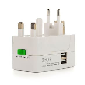 Viaje sem se preocupar com a compatibilidade de suas tomadas com o Adaptador de tomadas universal com 2 entradas USB da Cirilo Cabos. Um adaptador super prático porque concentra em um produtos apenas, todas as possibilidades de tomadas do mundo todo e ainda te dá duas saídas para carregamento USB.