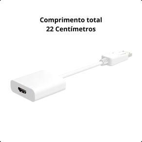 Tipo: Adaptador DisplayPort para HDMI Compatibilidade: PCs, notebooks, monitores, TVs e projetores Resolução máxima suportada: Full HD 1080P Conectores banhados a ouro para melhor condutividade e durabilidade Material: Plástico de alta resistência Comprimento total: 22 centímetros Cor: Branco Plug and Play: Não requer instalação de drivers Compatível com DisplayPort 1.1 e 1.2 Suporte a transmissão de áudio e vídeo digital