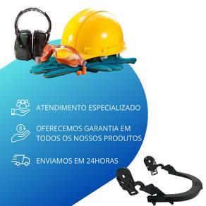 O Adaptador Facial/Auditivo Universal da Libus permite acoplar simultaneamente protetor facial e protetor auditivo tipo copo da linha L-300 em diversos capacetes industriais, garantindo proteção integrada para o usuário.