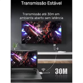 CONTEÚDO DA EMBALAGEM: 01 - Conjunto HDMI sem fio 01 - Adaptador HDMI - MicroHDMI 01 - Adaptador HDMI - MiniHDMI