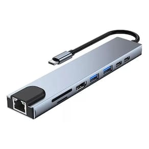 Especificações: - tipo de interface: usb tipo c - número de portas: 8 - acabamento: alumínio - comprimento do cabo: 12,5cm - função: hdtv, leitor de cartão, rj45 ethernet - padrão: usb 3.0 - tipo: 8 em 1 - material: alumínio - porta 1: rj45 - porta 2: tf/sd card - porta 3: hdtv port - porta 4: pd change - porta 5: usb 3.0 - compátível 1: macbook pro air - compátível 2: type-c port laptop - compátível 3: lenovo, dell, asus. - compátível 4: nintendo switch