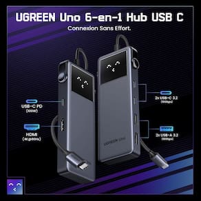 Ugreen uno 10gbps usb-c hub hdmi 4k 60hz pd 100w usb c para 2 usb-c e 2 usb-a 3.2 adaptador com indicador led Compatível com macbook/pro/air/m3/m2/m1,//pro/air,//16/plus/pro/max,/galaxy/s24 Porta de tela hdmi 4k 60hz Porta usb  dados  2 usb 3.2 e 2 usb-c 3.2 Porta de carregamento dp 100w Transferência de dados 10 gbps Nenhum driver necessário para windows/11/10/8.1/8,//os,/linux,/ipados,/ios,/android. Expansão 6 em 1 este hub usb c transforma instantaneamente uma única porta usb c do seu computador em 1 porta hdmi 4k 60 hz, 2 portas usb-c de 10 gbps, 2 portas usb-a de 10 gbps. Perfeito para suas necessidades de conectividade de monitor externo e transferência de dados. Pequena dica certifique-se de que a porta usb c do seu computador/tablet/telefone suporta saída de vídeo para que a porta hdmi funcione corretamente. Transferência de dados ultrarrápida de 10 gbps este hub usb c de 10 gbps está equipado com 4 portas usb 3.2 gen 2  2 usb-c e 2 usb-a  que suportam transferência de dados em velocidade ultrarrápida de 10 gbps, perfeito para conectar dispositivos rígidos drive, leitor de cartão, unidade flash usb, transferindo filmes de alta definição ou arquivos grandes em segundos. Nota: essas portas de dados não suportam saída e carregamento de sinal de vídeo. Conecte um segundo monitor 4k o hub usb c hdmi suporta resolução de até 4k a 60 hz  compatível com versões anteriores de 4k a 30 hz, 1080p a 600 hz, etc. . Você pode duplicar ou estender a exibição para uma segunda tela maior. Ideal para transmitir vídeos 4k em uma tela maior ou fazer apresentações com um projetor no escritório. Para obter resolução de 4k a 60 hz, certifique-se de que a porta usb c do seu dispositivo host deve suportar displayport alt mode e versão dp1.4. Carregamento rápido pd 100w este dock usb c fornece potência de carregamento de até 85w  se você conectar um carregador de 100w, o hub consome 15w  através da porta de carregamento pd, que carrega seu dispositivo host em alta velocidade  laptop/tablet/telefone  . Pequena dica 1. Não conecte dispositivos periféricos como hdd ou monitor através desta porta pd, porque ela não suporta transferência de dados e vídeo. 2. O carregador de 100w não está incluído. Ampla compatibilidade o adaptador multiporta usb-c é compatível com macbook/pro/ m3/m2/m1,/2024 - 2016 , macbook/air/ m3/m2/m1,/2024 - 2018 ,/imac,/xps/15/13, magicbook/16/pro,/thinkbook/14,/asus zenbook,/matebook/16/pro//16/pro/max//15/series, galaxy/s24/s24+/s24 ultra/s23/s22/s21/note/20, steam/deck,/ally/rog,/switch, etc. -marca ugreen -cor preto -modelo 10 gigabits 17,9 x 10 x 2,2 cm; 120g Homologação Anatel: 109062214103