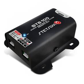 O ST6100 - Filtro/Remoto foi desenvolvido para uso em players automotivos de fábrica, nacionais ou importados que não possuem saída de alta impedância (RCA) e saída para acionamento REMOTO. Também pode ser utilizado em players comuns de mercado. O ST6100 cone a saída de baixa impedância (saída fio) para alta impedância (RCA) e gera automaticamente uma saída REMOTO pela detecção do áudio. Possui tecnologia de filtro antirruído que elimina loops na instalação e evita ruídos de motor. Quando utilizado, apenas como filtro antirruído, o ST6100 dispensa a conexão do chicote de alimentação (12Vdc).