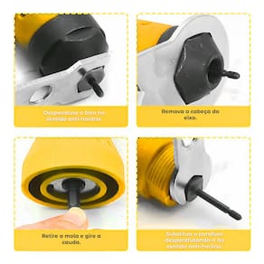 ESPECIFICAÇÕES TÉCNICAS: Material: Aço inoxidável + Plástico ABS reforçado; Velocidade Máxima de Rotação: 1000 rpm; Tamanhos dos Bicos: 2.4 mm, 3.2 mm, 4.0 mm, 4.8 mm. (Para rebites 2, 3, 4 ou 5mm)