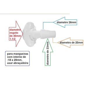 utilizado na adaptação da mangueira de saída da máquina de lavar ou máquina de lavar louça, fazendo o despejo direto na rede de esgoto.
