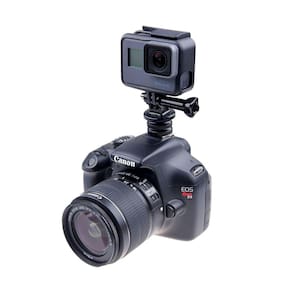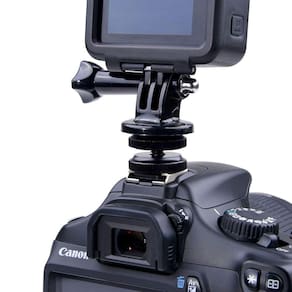 Monte a sua GoPro ou qualquer outra câmera de ação em uma câmera DSLR usando este Adaptador Sapata e Tripé e inove a maneira de fazer os seus registros.