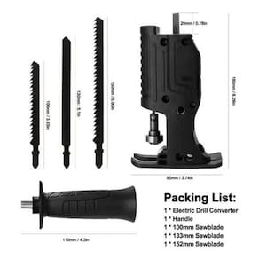 Adaptador Serra Sabre Tico Tico Furadeira E Parafusadeira Esse adaptador consegue transformar sua furadeira ou parafusadeira em uma serra tico-tico. Praticidade e economia definem esse produto. - Com troca rápida e fácil da lâmina - Engate rápido de encaixe universal que aceita lâminas com qualquer tipo de encaixe - Executa cortes retos e curvos, rasgos, chanfros, cortes de imersão em Madeiras, metais e plásticos - Empunhadura resistente Itens inclusos: 1x Adaptador 1x Empunhadura 1x Lâmina 100mm 1x Lâmina 133mm 1x Lâmina 152mm Marca: Sg Utilidades