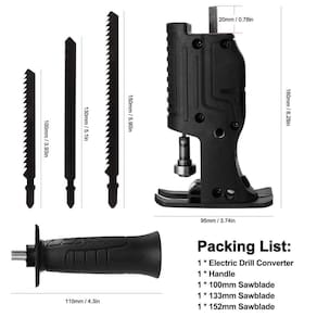 Adaptador Serra Sabre Tico Tico Furadeira e Parafusadeira Esse adaptador consegue transformar sua furadeira ou parafusadeira em uma serra tico-tico. Praticidade e economia definem esse produto. - Com troca rápida e fácil da lâmina - Engate rápido de encaixe universal que aceita lâminas com qualquer tipo de encaixe - Executa cortes retos e curvos, rasgos, chanfros, cortes de imersão em Madeiras, metais e plásticos - Empunhadura resistente Itens inclusos: 1 Adaptador 1 Empunhadura 1 Lâmina 100mm 1 Lâmina 133 mm1 Lâmina 152 mm
