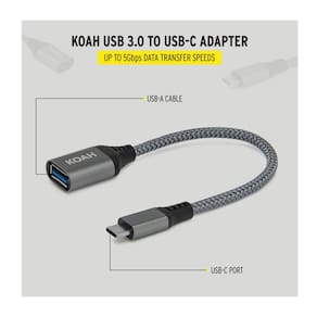 Atualize sua conectividade com o adaptador Koah Pro USB-C para USB 3.0, projetado para transferência de dados rápida e confiável e uso diário profissional. Se você estiver conectando câmeras, pen drives, teclados ou armazenamento externo, esse adaptador oferece velocidades de transferência de até 5 Gbps, mantendo um design compacto e durável.