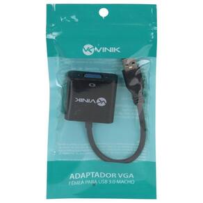 Conectores: vga fêmea / usb 3.0 Cor: preto - resolução vga: até 1080p / 60hz Material do revestimento: pvc emborrachado Homologação Anatel: 136132205567 A linha de cabos, adaptadores e conversores Vinik, são as melhores opções no mercado. Sem perder a qualidade na sua necessidade de adaptar ou converter as entradas de áudio e vídeos de seus aparelhos. Permite conectar dispositivos adicionais de visualização (monitor CRT / LCD, projetor) para o seu PC desktop ou notebook. O dispositivo de imagem ligado pode ser configurado para clonar sua tela principal, ou estender o desktop de Windows permitindo a visibilidade de mais aplicações ao mesmo tempo