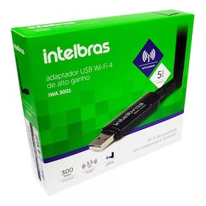 O IWA 3001 é um adaptador USB de alto ganho que permite conectar via Wi-Fi notebooks e desktops sem placas wireless ou com placas de velocidades inferiores a 300 Mbps. O modelo é ideal para quem busca uma solução fácil de instalar e com mais alcance de sinal, além de permitir a conexão através do Wi-Fi de Notebooks e Desktops que não possuem placas wireless, ele permite a conexão com placas com velocidades de até 300 Mbps. Ele é recomendado para planos de internet até 40 Mbps*. Sua instalação é muito simples: basta conectá-lo a uma porta USB e então proceder com a instalação do software (driver) que acompanha o produto.Mais velocidadeCom o adaptador USB IWA3001 você tem Wi-Fi com o melhor da tecnologia. Muito mais velocidade para compartilhar, baixar, assistir e jogar online.Instalação superfácilÉ só plugar na entrada USB, configurar sem complicação e pronto, seu dispositivo já pode navegar com mais velocidade e estabilidade.Mais velocidade com conexões até 300 Mbps. Com isso, você tem menos interferência e melhor distribuição de dados.Características- Alto ganho: muito mais velocidade para compartilhar, baixar, assistir e jogar online- 2.4GHz : menos interferência e melhor distribuição de dados- Instalação superfácil, tanto para experts como para iniciantesCaracterísticas» Velocidade de 300 Mbps» Alto ganho: antena externa de 3,5 dBi» Instalação superfácil» Antena removível» 5 anos de garantiaEspecificações TécnicasHardwareChipset Realtek RTL8192EU1 antena externa de 3,5 dBi1 antena interna de 1 dBiParâmetros wirelessPadrões IEEE 802.11b/g/nModo do rádio MiMoFrequência de operação 2.4 GHzLargura de banda 20, 40 MHzTaxa de transmissão Até 300 Mbps¹Potência máxima (E.I.R.P.) 20 dBm (100 mw)Compatibilidade Windows® XP/Vista/7/8/8.1/10Conexão USB 2.0IWA 3001 Adaptador USB wireless¹ Velocidade nominal quando conectado à rede de um roteador compatível com essa velocidadeLEDApagado: driver não foi instalado corretamente ou interface do adaptador wireless foi desativadaPiscando lentamente: interface do adaptador ativada porém, não transmitindo dadosPiscando rápido: transmitindo dadosItens Inclusos:01 und. Adaptador Usb Wireless Iwa 3001 N300 C/ Antena - Intelbras01 und. Manual de Instruções01 und. CD Driver de InstalaçãoHomologação Anatel nº: 03713-17-00160