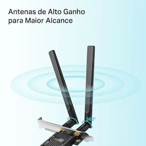Diga adeus aos cabos e experimente a verdadeira liberdade de conectividade com o Adaptador Archer TX20E. Equipado com as mais recentes tecnologias Wi-Fi 6 e Bluetooth 5.2, este adaptador proporciona uma experiência de rede sem igual. Experimente uma velocidade de conectividade incrível com o Wi-Fi 6, oferecendo velocidades de até 1201 Mbps em 5 GHz + 574 Mbps em 2,4 GHz. Com o Archer TX20E, seu PC pode se conectar à rede Wi-Fi de qualquer cômodo da sua casa, graças à sua ampla cobertura Wi-Fi.