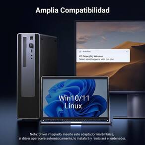 Driver integrado para/Windows O adaptador WiFi USB possui um driver integrado para simplificar o processo de instalação. No/windows,/10/11, conecte o adaptador WiFi à porta USB.