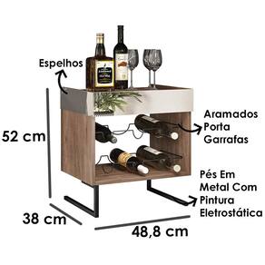 Adega Bar Espelhada Para 06 Garrafas Aurum DHom, é aquele mimo para o seu ambiente, pois o mesmo é um produto desenvolvido com um alto nível de beleza e sofisticação. Estrutura em MDP de 15 mm, pintura eletrostática (epóxi) e acabamento em BP e este super material ainda viabiliza valores mais naturais em seu visual que similiarizam aos desenhos de madeiras naturais. A adega é composta por três lindos espelhos, dois aramados para até 06 garrafas, tampo com espaço para acomodar copos e acompanha pés metálicos com proteção antioxidante. Suporta até 10 kg distribuídos. Pensado exatamente em complementar o seu ambiente. Estes móveis chegarão na sua casa separado em 02 volumes.