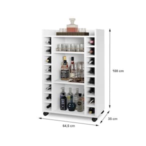 Adega bar Bélgica branca vai deixar sua sala mais elegante. Armazena até 16 garrafas de vinho horizontalmente, tem 3 nichos também para garrafas e ainda pode usar a parte superior para colocar uma bandeja.