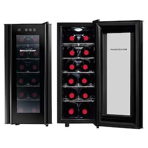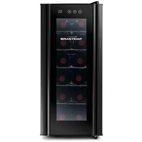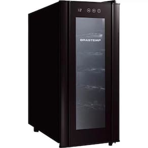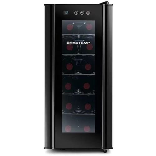 Adega Brastemp para 12 garrafas com painel touch, controle de temperatura entre 12°C e 18°C, iluminação LED e 5 prateleiras.Capacidade total de garrafas