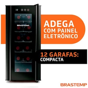 Com capacidade para 12 garrafas, a adega possui um controle eletrônico de temperatura que permite ajustar entre 12 e 18C, garantindo a preservação da qualidade dos vinhos e a conservação de seus aromas e sabores únicos.
