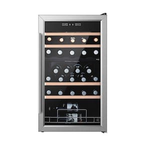 Dual Zone, Prateleiras em madeira, Porta Glass com Moldura em Inox, Controle de temperatura Digital Touch, Porta de vidro double glass, Refrigeração por compressor com gás ecológico.Capacidade total de garrafas