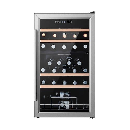 A adega Eos Dual Zone chegou para melhorar seu vinho do dia a dia. Com duas zonas distintas, permite a você armazenar vinhos brancos e tintos ao mesmo tempo, mantendo a temperatura ideal para cada vinho. Seu painel interno com tecnologia Digital Touch, permite a você programar facilmente a temperatura desejada em cada uma das zonas do produto, mantendo seu vinho sempre na temperatura ideal. A iluminação interna em Led, permite que você destaque seus vinhos e também escolha a garrafa que deseja tomar de forma fácil, sem precisar procurar. A isolação em vidro duplo da porta, fornece um menor consumo de energia, reduzindo a troca de calor do produto com o meio externo. Com prateleiras de vinho em madeira, a adega Eos vai adicionar muito mais sofisticação para seu ambiente, deixando o local muito mais bonito.
