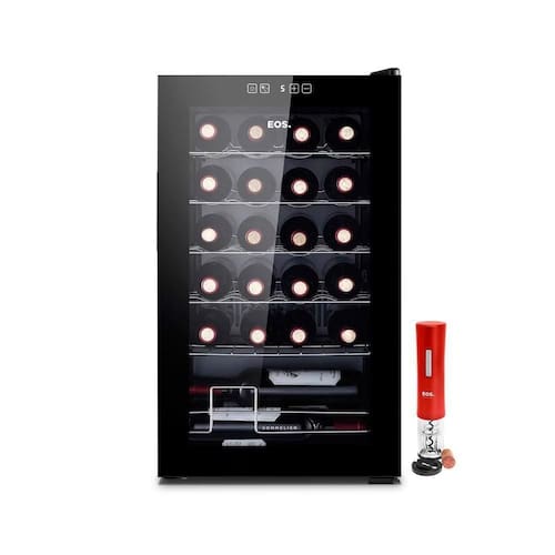Muito importante:-- conferir produtos no ato do recebimento. Não aceitar produtos com embalagem violada amassado, rasgado, aberto, quebrado, etc , a recusa deve ser feita no ato.Adega 24 garrafas climatizada painel touch eac24g 127v com abridor elétrico vermelho eoscomponentes do kit:- 1 adega climatizada 24 garrafas compressor painel touch full glass eac24g 127v - eos- 1 abridor de vinho sommelier elétrico vermelho a pilha eab01v - eosadega climatizada 24 garrafas compressor painel touch full glass eac24g 127v - eos:variação de temperatura, umidade, luz e vibração são alguns dos vilões da qualidade do seu vinho. Ideal para quem não dispensa bons vinhos, a adega tem design sofisticado e elegante.Conta com sistema de refrigeração por compressor com gás ecológico, que não agride o meio ambiente e ainda reduz a sua conta de energia. Possui ainda controle eletrônico e preciso de temperatura, painel touch screen e sistema de iluminação interna em led. Atua em temperatura de trabalho entre 6 e 18 c.Detalhes do produto:- baixo consumo: consumo de energia reduzido;- touch screen: display eletrônico com controle de temperatura;- silenciosa: baixo nível de ruído e sem vibração;- design moderno: design pensado para ser prático sem perder a sofisticação;- porta full glass: com painel de controle touch e puxadores embutidos.Características:- capacidade para 24 garrafas.- refrigeração por compressor com gás ecológico.- porta de vidro full glass: elegância e tecnologia que combinam com seu ambiente.- prateleiras para garrafa de vinho cromadas.- controle eletrônico externo de temperatura.- temperatura de trabalho 6c a 18c.- iluminação interna de led.- baixo nível de ruído.Ficha técnica:- voltagem: 127v/60hz- alimentação: elétrico- aplicação: vinhos- capacidade: 24 garrafas diâmetro máximo de 7,6cm - faixa de temperatura ºc : 6 a 18c- iluminação interna: sim, em led- garantia: 12 meses- pode ser embutida: não- potência w : 130w- consumo: 22 kwh/mês- diâmetro máximo das garrafas: 7,6cm - prateleiras: 6 fixas dimensões:- adega: 74,5 cm a x 43 cm l x 44,5 cm p- peso líquido: 22,5kgabridor de vinho sommelier elétrico vermelho a pilha eab01v- eos:o abridor de vinho automático eos chegou para aumentar a sofisticação e praticidade na hora de apreciar seu vinho.Retirando a rolha com um toque de um botão e sem esforço, o abridor eos remove a rolha em apenas 9 segundos e ainda possui a função reversa para soltar a rolha e acompanha cortador de lacre.Leve, compacto e alimentado com apenas 4 pilhas aa, você pode levar o abridor eos com você para qualquer lugar.Detalhes do produto:- funciona a pilhas aa: com ótima duração, funciona com quatro pilhas aa. pilhas não inclusas itens inclusos:- 1 abridor de vinho sommelier elétrico- 1 cortador de lacredimensões:- abridor: 22,9 cm a x 4,9 cm l x 4,9 cm p- peso líquido: 0,24kgmedidas da embalagem: 77 cm a x 49cm l x 47cm p;peso bruto: 25kg.