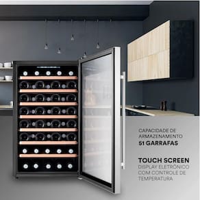 Adega EOS Premium para 51 garrafas, com controle eletrônico de temperatura, refrigeração por compresCapacidade total de garrafas