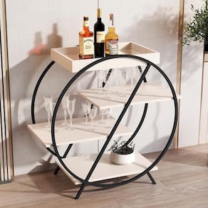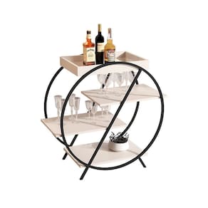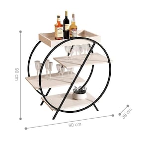 Contém quatro prateleiras para facilitar o armazenamento de garrafas, taças e objetos decorativos, possui espelho na base da bandeja.