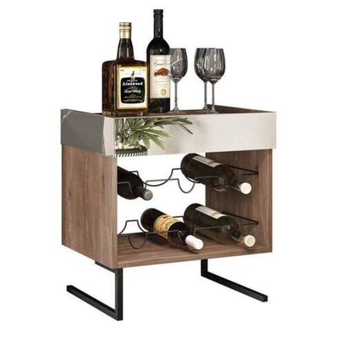 Três Lindos Espelhos: Acrescente sofisticação ao seu espaço. Suportes Aramados: Espaço para seis garrafas de vinho. Durabilidade: Estrutura em MDP de 15mm, resistente à umidade, riscos, mofo e bactérias. Acabamento Natural Fosco: Visual semelhante à madeira natural, e peças em metal com Pintura eletroestática Pés Estruturais: Metal antioxidante com pintura eletroestática. Sistema de Montagem: Parafusos Manual de Montagem: Sim (recomendamos montagem por um profissional) Instruções de Limpeza: Utilize um pano limpo e levemente úmido Embalagem: Você receberá 02 volumes