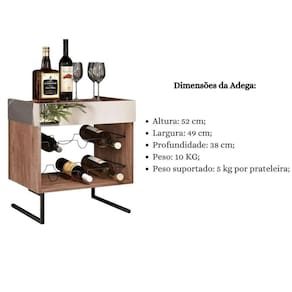 Suportes Aramados: Espaço para seis garrafas de vinho.
