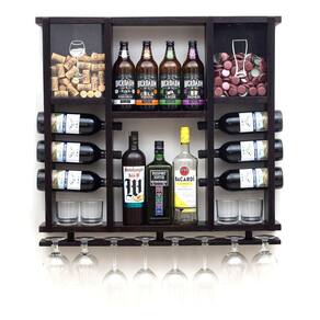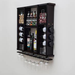 Adega Barzinho com Porta Rolhas, Porta Tampinhas e Porta TaçasCor Nogueira Preta Fabricada em Madeira Maciça, Certificada e Sustentável; Ideal para Cervejas Artesanais, Vinhos, Whiskeys e Cachaças; Exclusivos compartimentos Porta Rolhas e Porta Tampinhas com Vidro Frontal Adesivado e Fundo Removível; Comporta até 13 Garrafas; Suporte para 8 Taças; Fotos Reais do Produto; Produto Criado e Desenvolvido por nossa empresa; Dimensões do Produto: 75cm de Altura, 80cm de comprimento e 12cm de Largura; Acompanha Kit de Fixação; O produto é enviado MONTADO.Garrafas e Taças não Acompanham o Produto Marca: Delenha decorações em madeira
